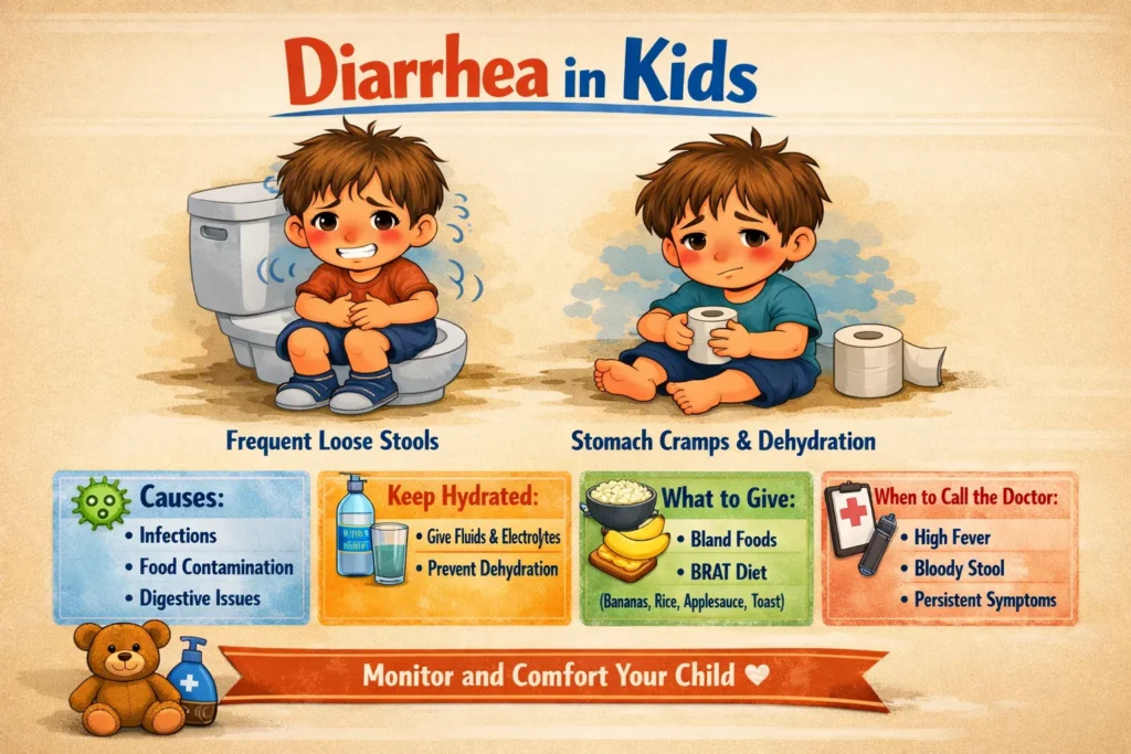 The good news is that the vast majority of cases of diarrhoea in kids are mild, self-limiting, and resolve within a few days with proper home care. But knowing how to manage it correctly — what to give your child to drink, what to feed them, how to spot dehydration early, and when to seek medical help — makes all the difference between a rough few days at home and a trip to the emergency room.